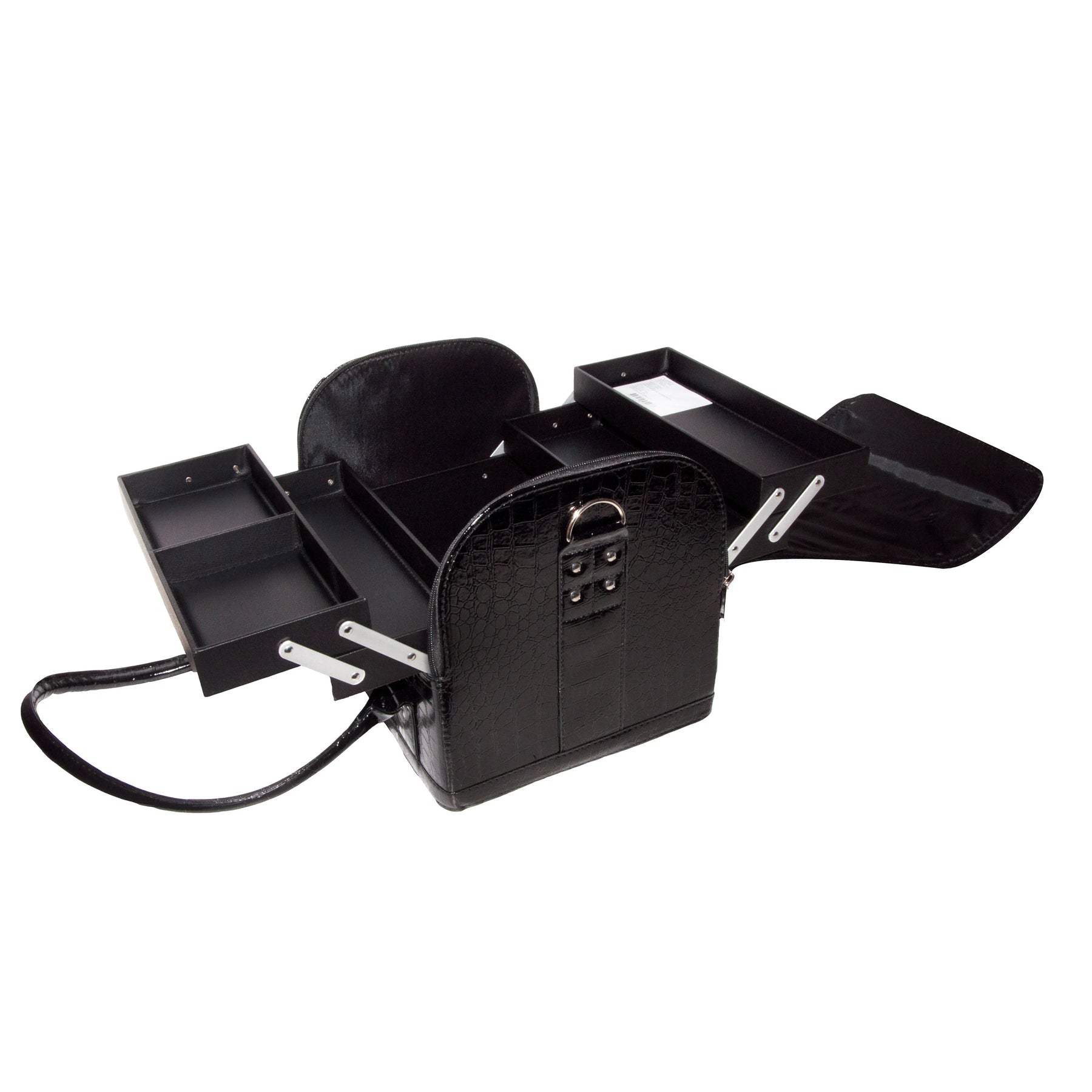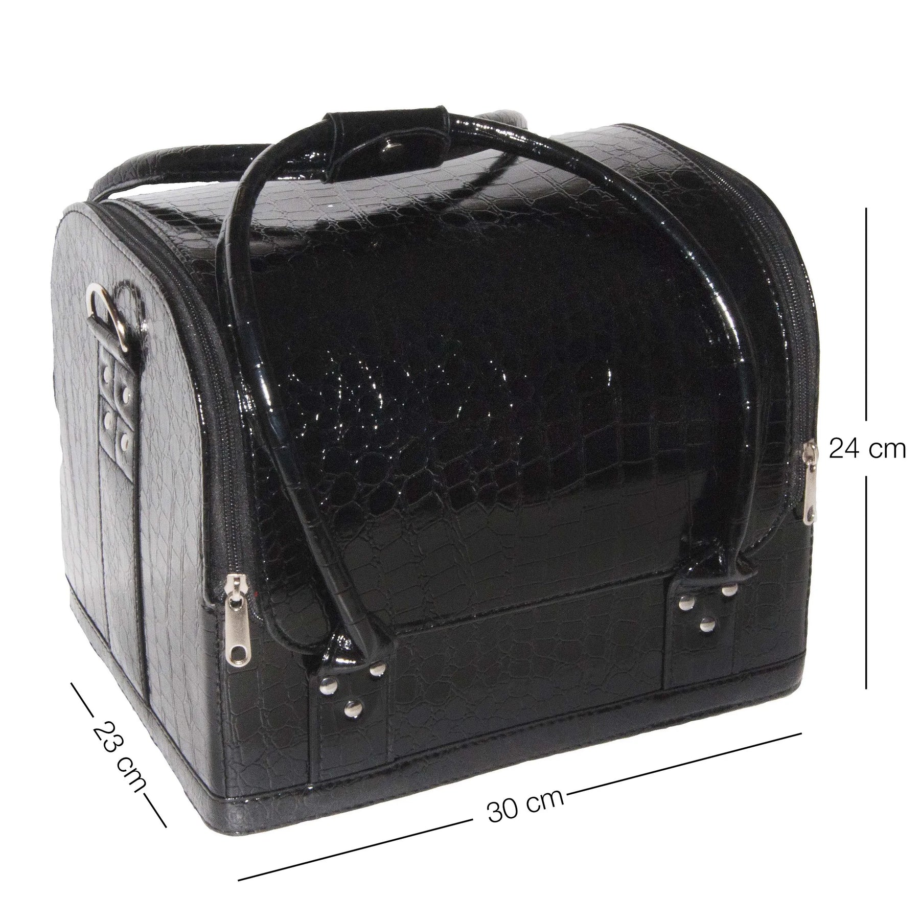 Maletín elegante negro croco de cuero de PVC brillante y diseño de alta gama. Con 4 bandejas con divisiones.