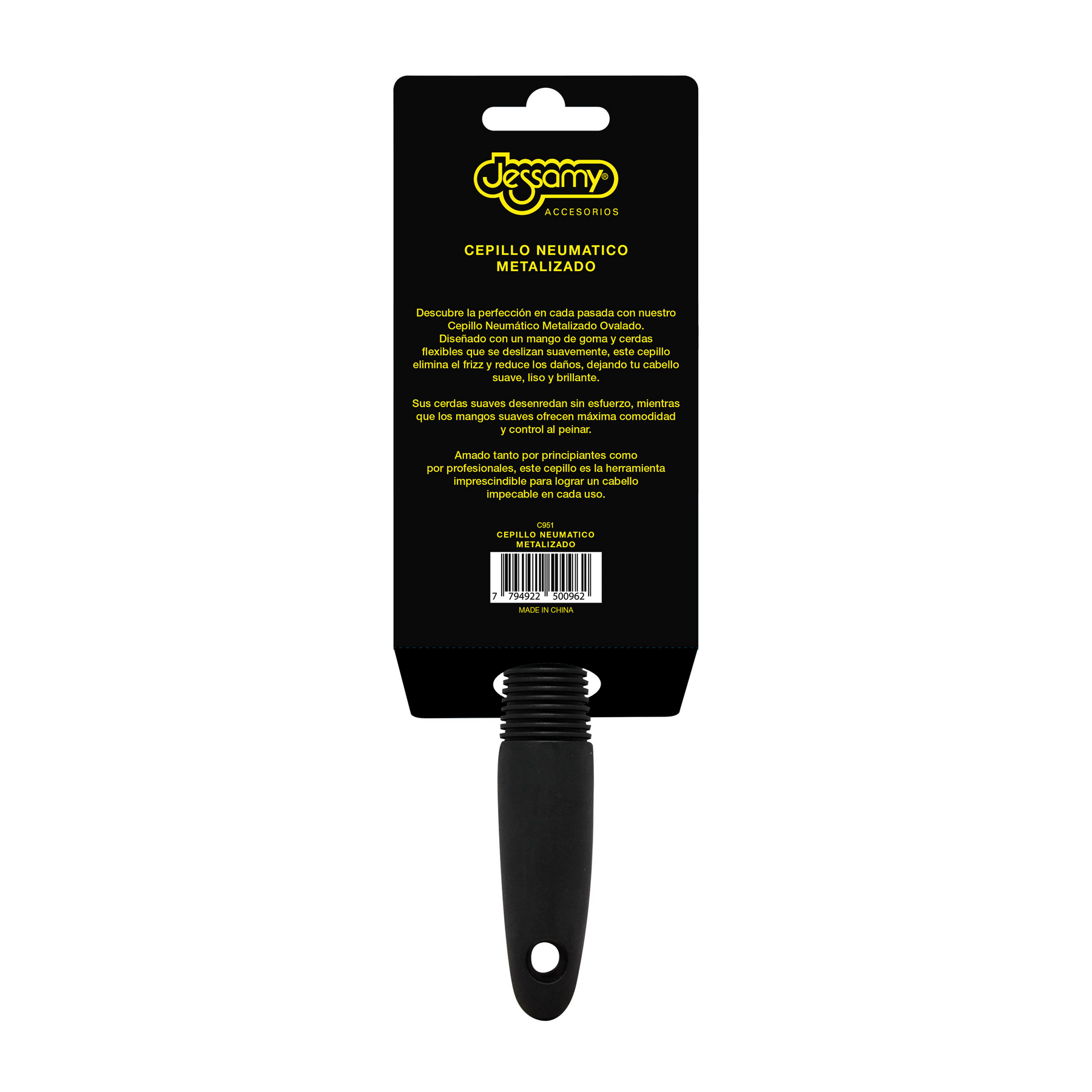 Cepillo neumático ovalado con mango de goma y cerdas flexible que se desliza suavemente, eliminando el frizz y reduciendo los daños, dejando tu cabello con un aspecto suave, liso y brillante.