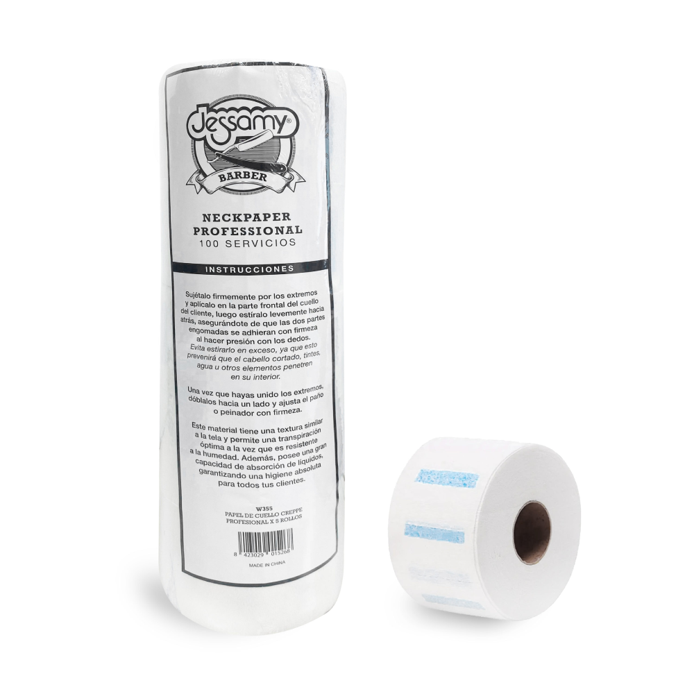 Modo de uso: Para colocar el papel hay que desprender una tira del rollo, y colocar en el cuello ajustando los extremos engomados para fijar el papel. Su uso evita que el cabello cortado, tinte, agua etc… penetren en el interior del cuerpo.