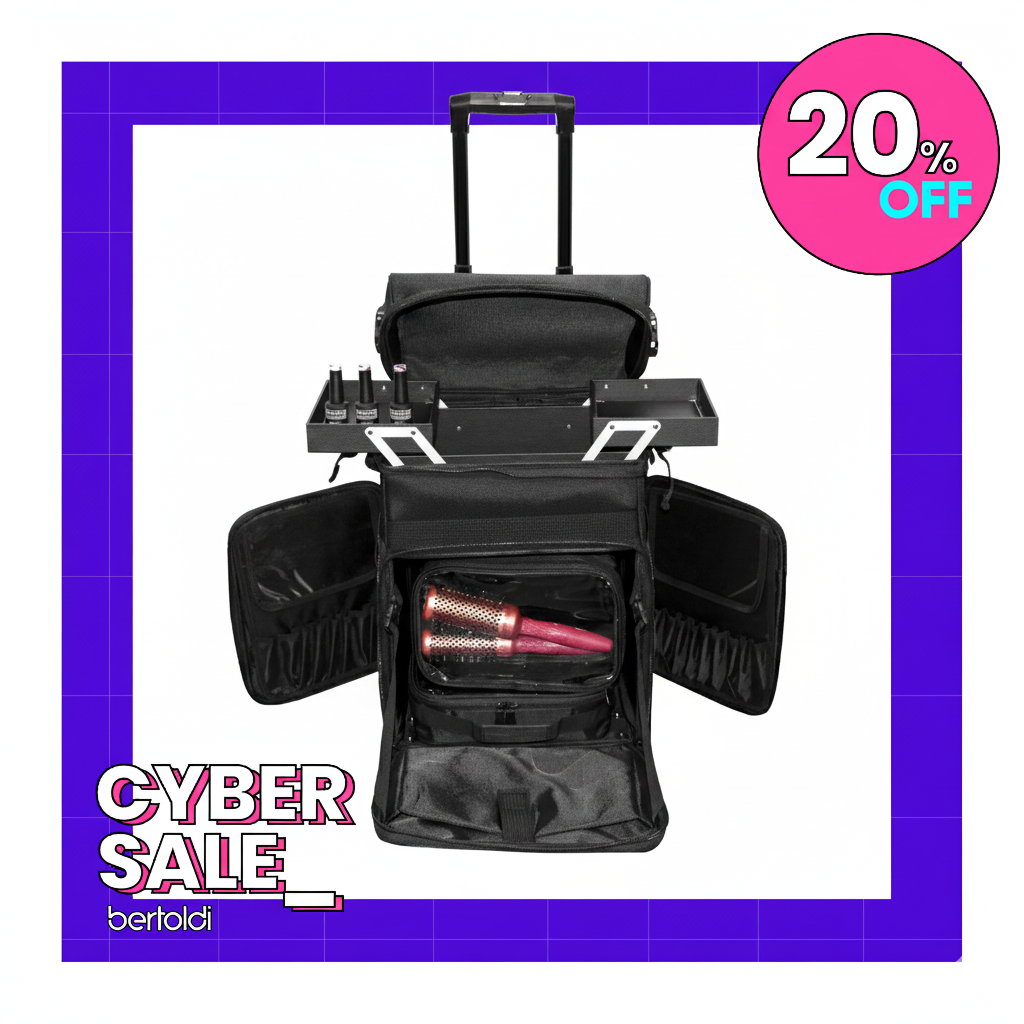 El maletín multiuso premium negro de Jessamy combina practicidad y elegancia en un diseño robusto y funcional. Incorpora compartimentos internos con bolsas transparentes extraíbles y organizadores para mantener todo en orden. Su sistema de bandejas desplegables y múltiples bolsillos facilita el acceso rápido a los accesorios. Además, sus ruedas giratorias y manija extensible lo convierten en el compañero perfecto para viajes o trabajo diario.
