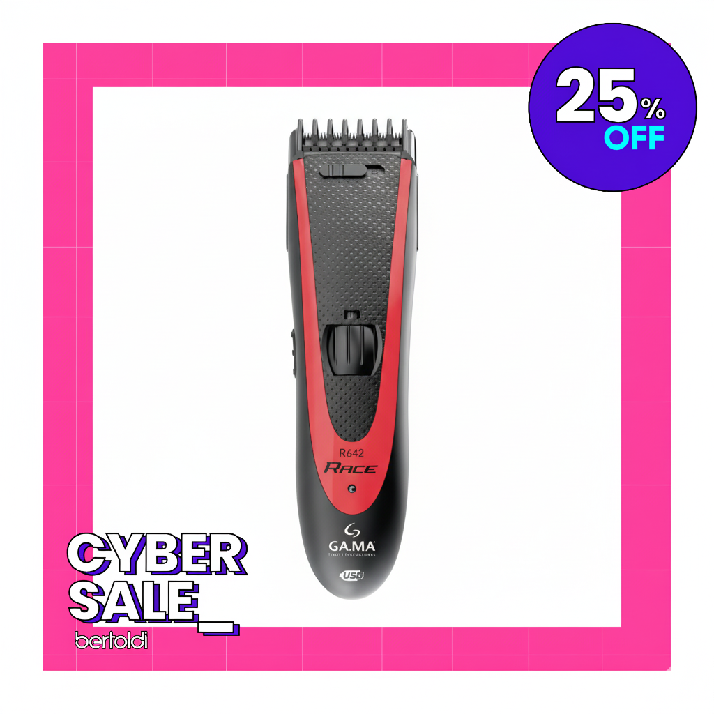 La RACE R642 de GA.MA dispone de un diseño práctico y ergonómico, lo que hace liviano y muy fácil de usar. Cuenta con cuchillas de acero inoxidable y peine de alzada (3 mm, 4 mm, 5mm, 6 mm 7 mm) que brincan un corte preciso.