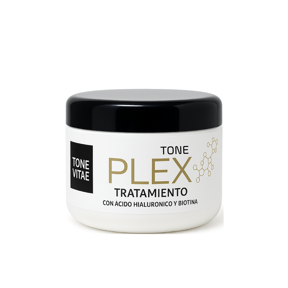 Mascarilla capilar Plex Tone Vitae ofrece fortalecer, nutrir, revitalizar gracias al acido hialurónico y las Nanoesferas de Biotina para una penetrante fortificación del cabello.