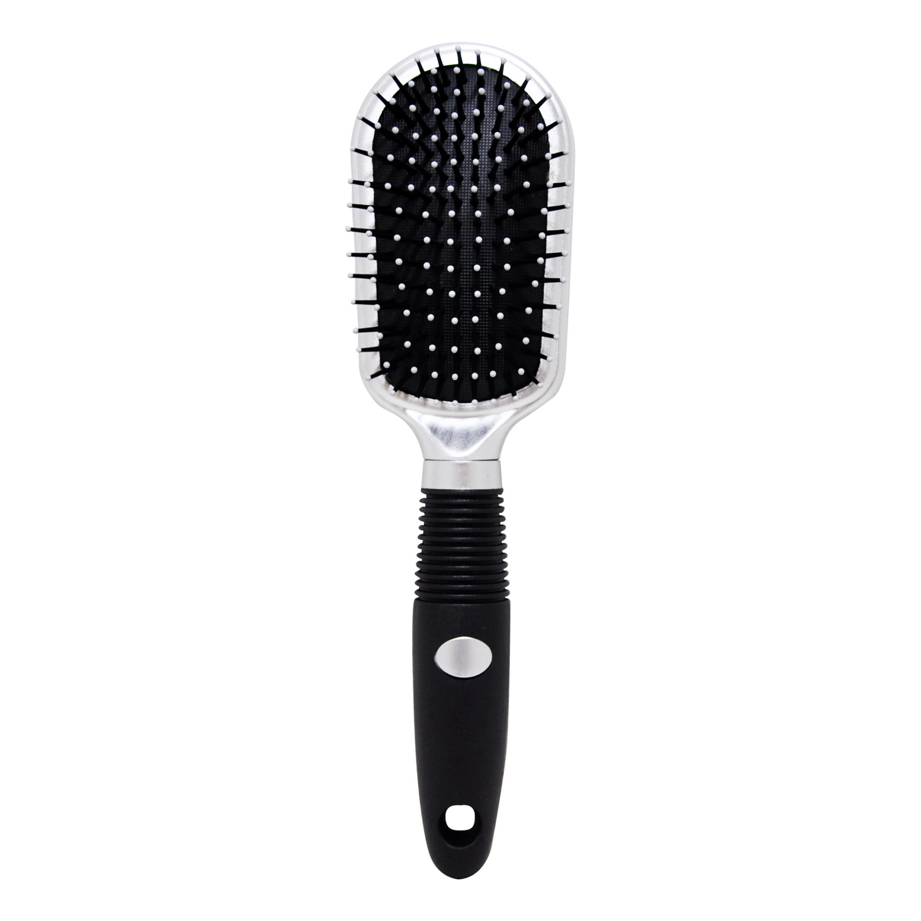 Beneficios: Cepillo Desenredado eficiente: Las cerdas flexibles del cepillo neumático recto grande facilitan el desenredo del cabello, minimizando la rotura y los daños. Alisado suave: Su diseño recto y grande lo hace ideal para alisar el cabello de manera suave, ayudando a controlar el frizz y darle un aspecto pulido. Durabilidad: El cuerpo metálico del cepillo ofrece durabilidad y resistencia, asegurando que sea una herramienta de peinado confiable a largo plazo. Diseño atractivo: Con su acabado metalizado y diseño elegante, este cepillo no solo es funcional, sino que también es un accesorio atractivo para tu colección de herramientas de peinado.