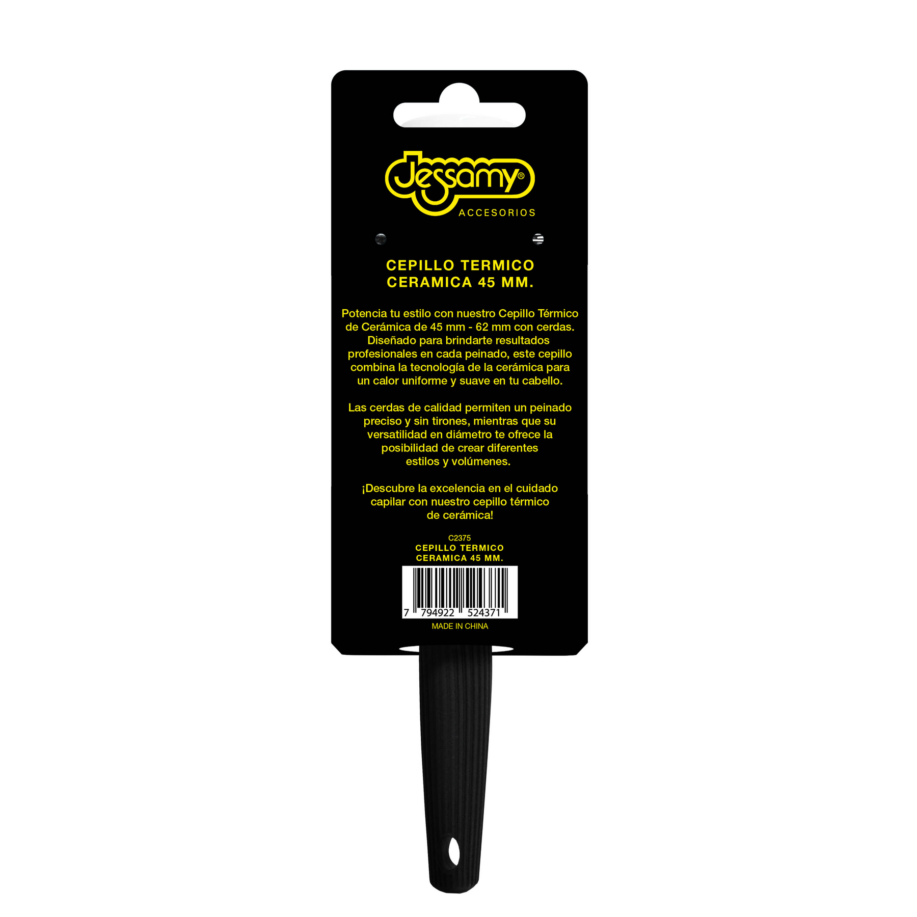 Cepillo Térmico Cerámica de 62 mm marca Jessamy. Cepillo revestido de cerámica. Se calienta más rápido y retiene el calor por más tiempo. Elimina el frizz y los cabellos sueltos. Agarre ergonómico y cómodo.