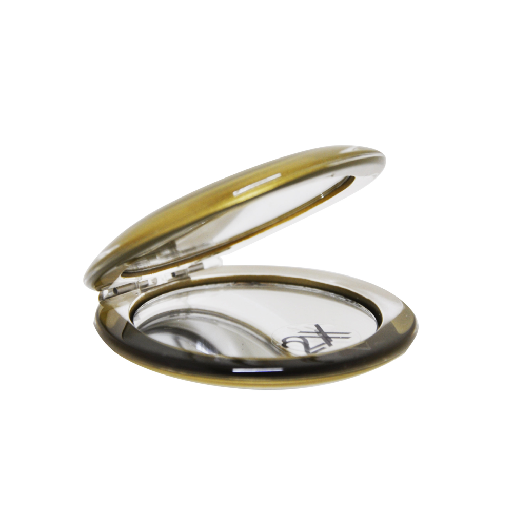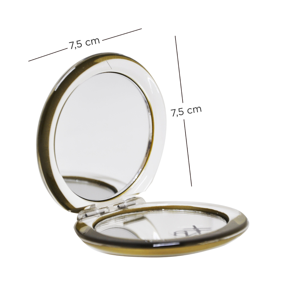 Espejo de cartera redondo, elegante y compacto con acabado brillante de color plateado y dorado, apto para cualquier ocasión. Con sus medidas del espejo interno 6 x 6 cm.
