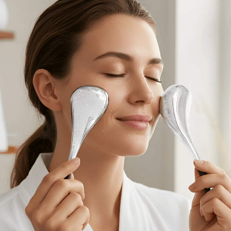 DUGA MASAJEADOR FACIAL ICE GLOBE Masajeadro Facial Ice Globe de DUGA. Refrescante y calmante que reduce la inflamación y mejora la circulación. Efecto desinflamante que suaviza y mejora la apariencia de la piel. Estimula la luminosidad y textura de la piel con su temperatura fría. Diseño ergonómico y liviano. Medidas: 18 x 11,5 x 5 cm Peso: 372 gr. Coloque los Ice Globes en el refrigerador o en un recipiente con hielo durante 20-30 minutos. NO SE RECOMIENDA GUARDARLOS EN EL CONGELADOR. Limpie los Ice Globes antes y después de utilizarlos. Cuando no estén en uso, guardarlos en su caja.