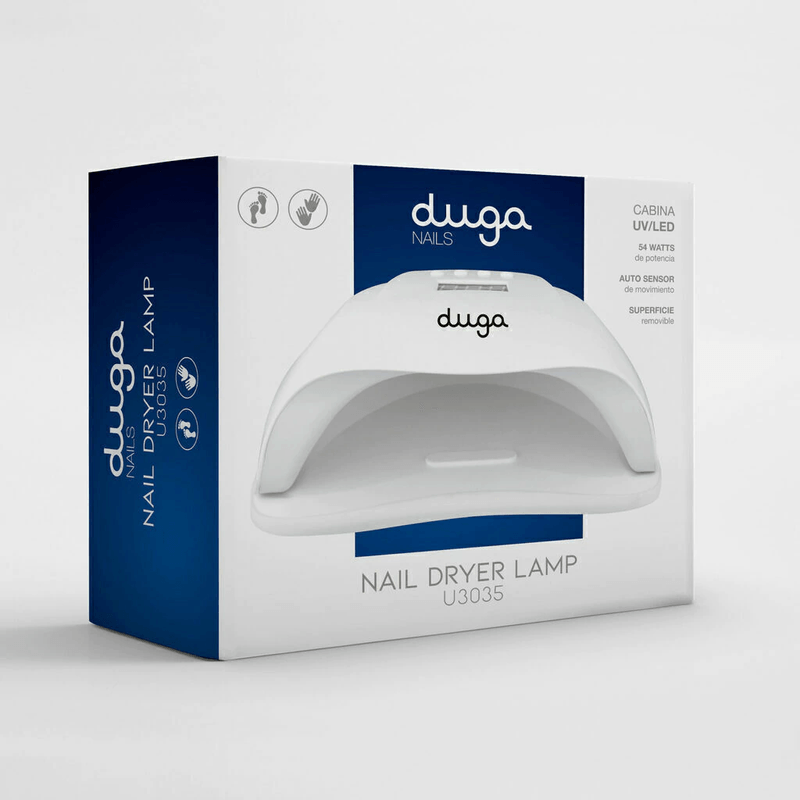 Cabina para uñas UV/LED de 54 W diseñada para secado/curado rápido y eficiente en manicura y pedicura, apta para uso en casa o salón. Ofrece resultados profesionales con auto sensor y temporizador inteligente de 10/30/60/99 s, lo que facilita el uso incluso a principiantes y reduce tiempos de aplicación. Integra 36 LEDs de doble longitud de onda (365 + 405 nm) para curado uniforme y compatible con distintos tipos de esmaltes, manteniendo eficiencia energética. Construcción de calidad para mayor durabilidad en un diseño moderno que se adapta a cualquier espacio. Medidas: 23,6 × 11 × 21 cm.