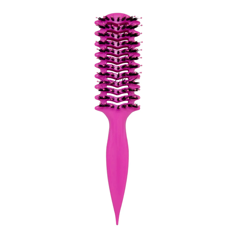 El cepillo para definir rulos Jessamy combina pines flexibles con cerdas suaves que moldean y dan forma al cabello rizado sin dañarlo. Su diseño curvo y ventilado favorece la circulación del aire durante el secado, ayudando a mantener rizos definidos y con movimiento. El mango ergonómico ofrece un agarre cómodo y seguro para un peinado preciso. Su vibrante color fucsia suma un toque moderno y alegre a tu rutina de belleza.