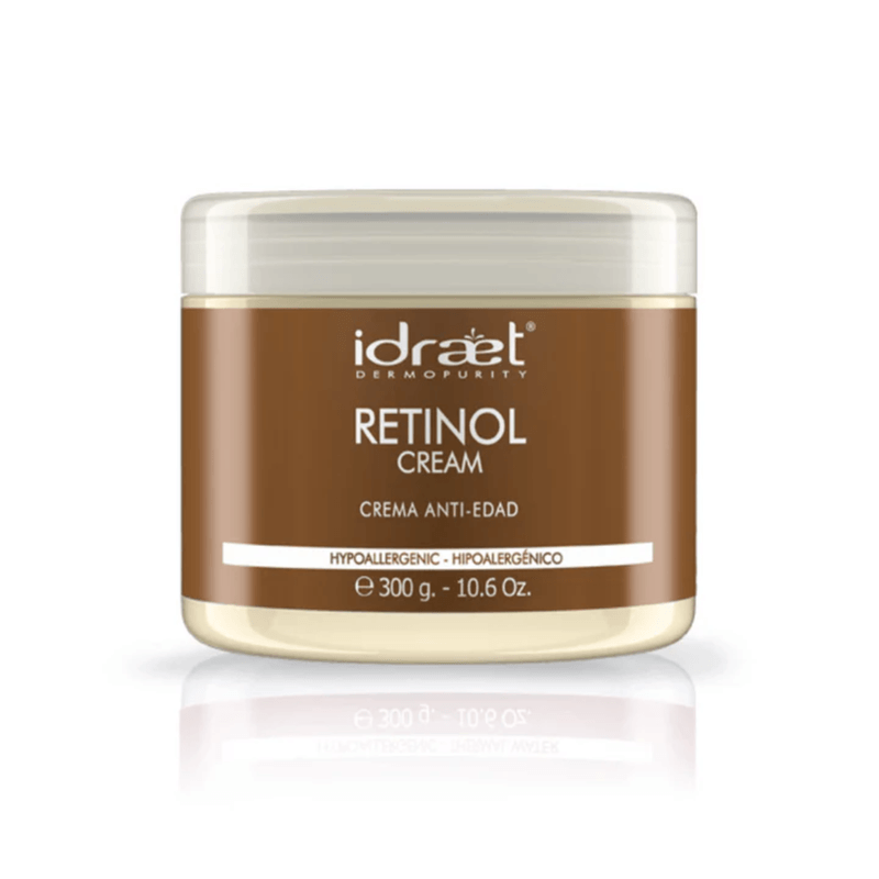 CREMA RETINOL IDRAET 300 GRBENEFICIOS:- Emulsión oleosa para realización de maniobras de masaje.- Suaviza las arrugas y corrige deshidratación.- Aporta gran suavidad al tacto y mejora la firmeza.- HipoalergénicoPRINCIPIOS ACTIVOS:Vitamina C LiposomalAntioxidante, participa de la síntesis de colágeno, es regenerador y tiene acción fotoprotectora.Vitamina EAntioxidante y potencia la acción de la Vitamina CRetinol LiposomalAntioxidante, estimula la regeneración celular, aumenta la síntesis de proteínas de la dermis, corrige la sequedad cutánea.MODO DE USO:- Colocar una pequeña porción de producto y masajear hasta total absorción