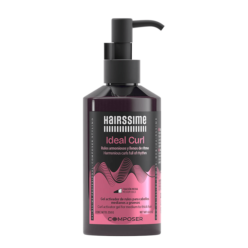 La línea Composer de Hairssime transforma el styling en una forma de arte. Inspirada en la Precisión, la Creatividad y la Calidad Profesional, cada producto es una herramienta diseñada para que el estilista pueda fijar, texturizar y finalizar sus creaciones con maestría. Ideal Curl te permite dar forma a tu visión, convirtiendo cada peinado en una obra de arte única, donde el cabello se mueve con ritmo y expresión, manteniendo su salud y belleza natural.