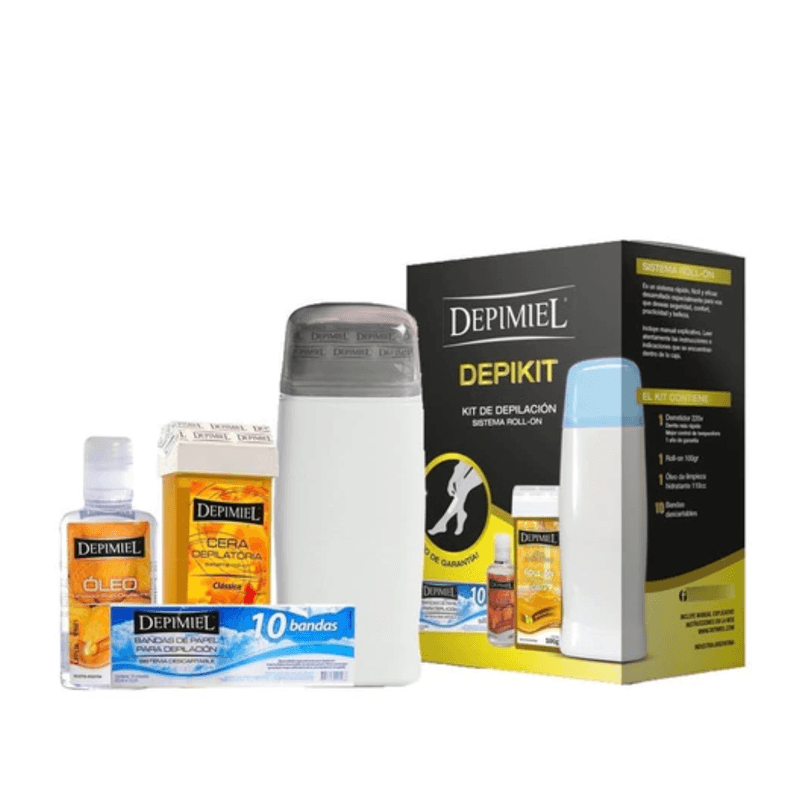 1 Derretidor 220 1 Cera Roll-On x100 g1 Óleo de limpieza hidratante x110 cc10 Bandas descartables.