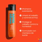 Mega Sleek ayuda a evitar el frizz y protege contra la humedad, controlando el cabello rebelde. Un cabello 5x más suave desde la primera aplicación. Contiene Manteca de Karité que ayuda a dominar el frizz, aportando nutrición y control.
