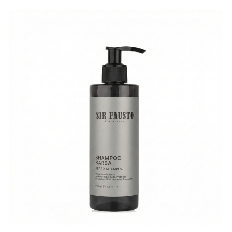 Recomendamos higienizar la barba entre 1 y 2 veces por semana para preservar los aceites naturales. Aplica una pequeña cantidad de shampoo sobre la palma de la mano, humedece el producto con agua y masajea en la barba hasta obtener espuma. Deja actuar unos minutos y enjuaga con abundante agua tibia. Para un acabado perfecto, seca el exceso de agua y estiliza con nuestra Pomada para barba y Óleos de Sir Fausto.