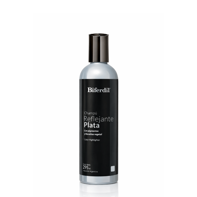 Champu Reflejante Plata con pigmentos y keratina vegetal. Ayuda a combatir la oxidacion del color en los cabellos blancos o grises , neutralizando las tonalidades amarillas indeseadas.