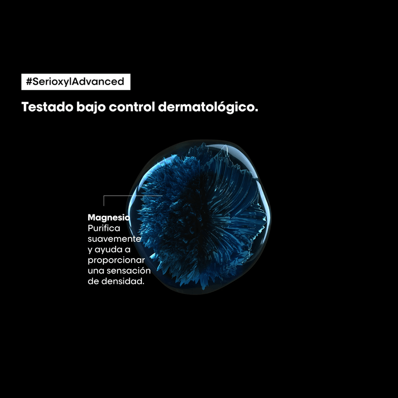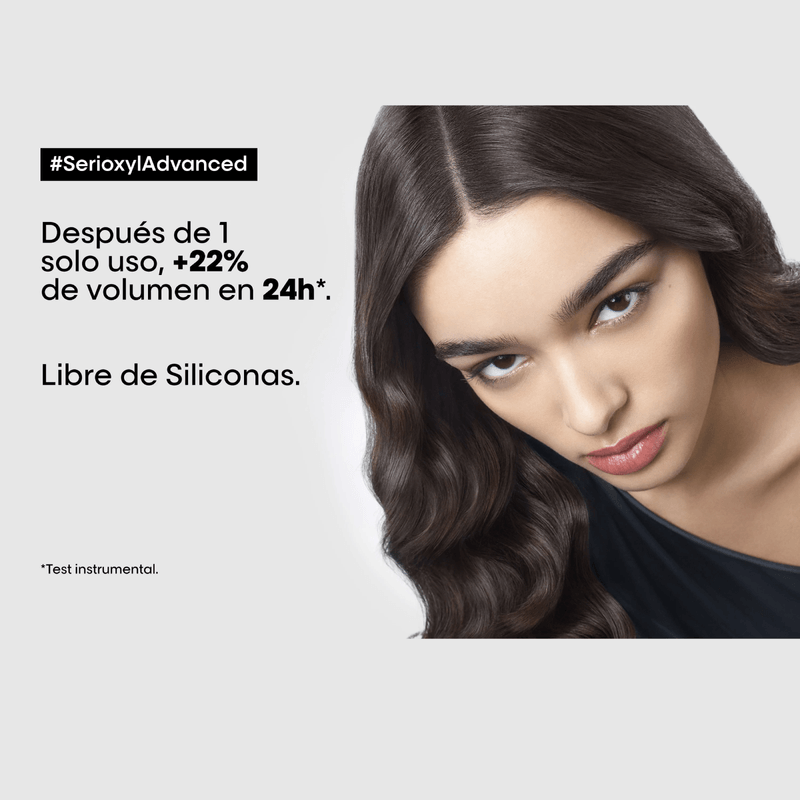 [CABELLO CON PÉRDIDA DE DENSIDAD]: Es un círculo vicioso y tenemos que salir de él.[DENSIFICAR EL CABELLO]: El champú purificante y densificador Serioxyl Advanced ha sido formulado específicamente para cabello debilitado. Este gel ligero purifica suavemente y ayuda a proporcionar una sensación de densidad. El cabello adquiere volumen y brillo.[FÓRMULA]: Enriquecido con Magnesio*, aporta textura a la fibra capilar. *Sal de magnesio.[PROBADO BAJO CONTROL DERMATOLÓGICO]: Desarrollado con profesionales del cabello y testado bajo control dermatológico. Primera coinnovación con 3 especialistas en cuero cabelludo:El experto en balayage y coloración Vivek Shyam Bhatia, de la India; el experto en cuero cabelludo Takku Orii, de Japón; y el experto en servicios permanentes y cuero cabelludo Jimmy Jiang, de China.[EFICACIA CIENTÍFICAMENTE PROBADA]: Después de 1 solo uso, + 22% de volumen en 24h**.**test instrumental[FRAGANCIA FRESCA]: Una fórmula fresca con una fragancia refrescante que proporciona una sensación de limpieza y con una base para el cuidado.[CONSEJO PROFESIONAL]: Por la noche, después de la ducha, aplicar Serioxyl Advanced serum activador de densidad.