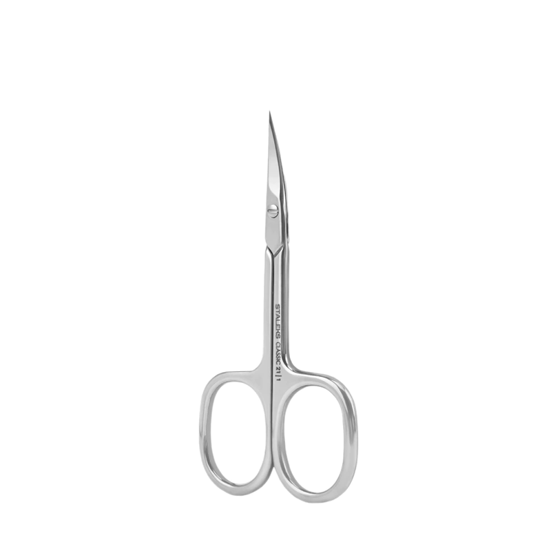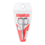 Tijeras de STALEKS formuladas para uso doméstico regular con construcción en acero inoxidable resistente a corrosión. Con 92 mm de largo y mangos rectos de proporción clásica, se adapta bien a manos de tamaño medio. Versátil y funcional también en entornos profesionales, aunque fue concebida como herramienta de mantenimiento personal. No compatible con esterilización en autoclave ni calor seco; requiere desinfección química. TÉCNICA DE USO Sostener las tijeras cómodamente con los mangos rectos acunados en la mano. Posicionar las cuchillas bajo la cutícula, paralelas a la lámina ungueal. Hacer cortes pequeños y controlados, avanzando lentamente alrededor de la uña. Evitar cortes profundos en la matriz. Desinfectar tras cada uso con solución antimicrobiana.