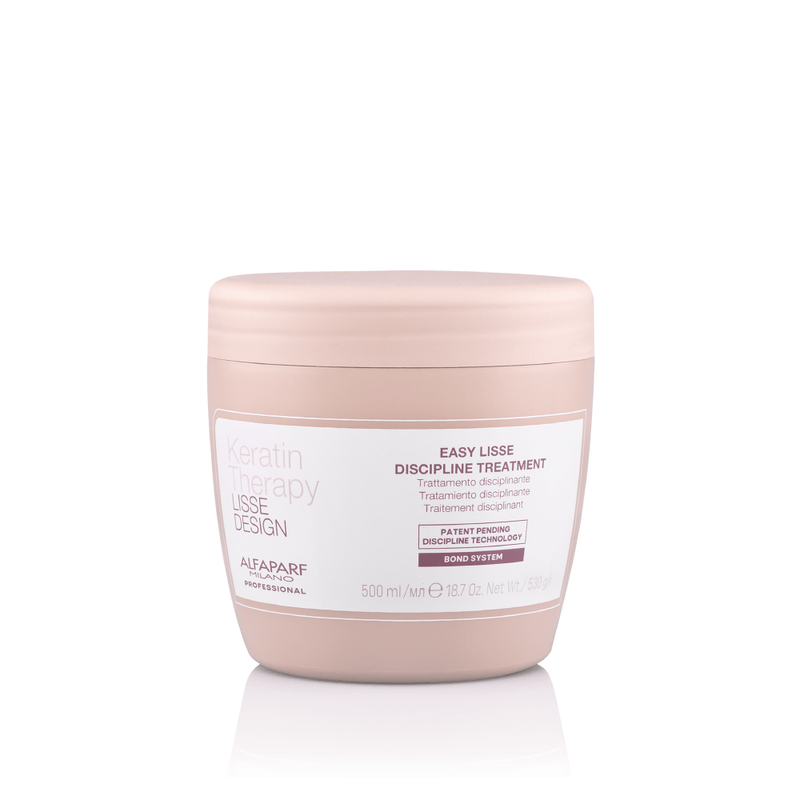 Paso 2 del servicio Easy Lisse Design de Alfaparf, el tratamiento Easy Lisse trabaja con calor para remodelar la estructura de las cadenas de queratina del cabello, dndole al cabello una apariencia suave como la seda, sin romper qumicamente los puentes de sulfuro.